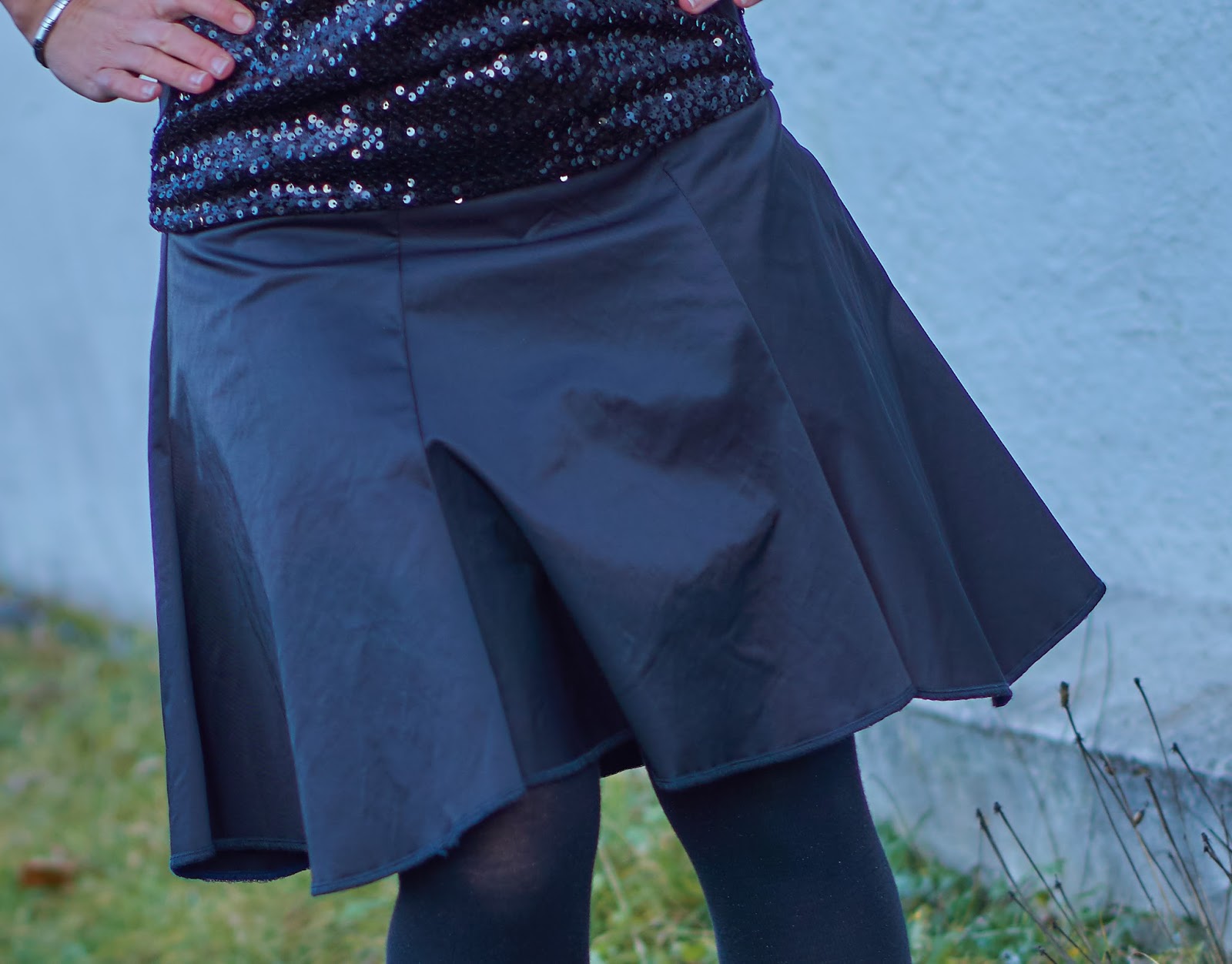 Dieser Satin ist schon sehr gstarrert, so dass der Rock nicht so schön fällt sondern mir etwas zu sehr absteht.