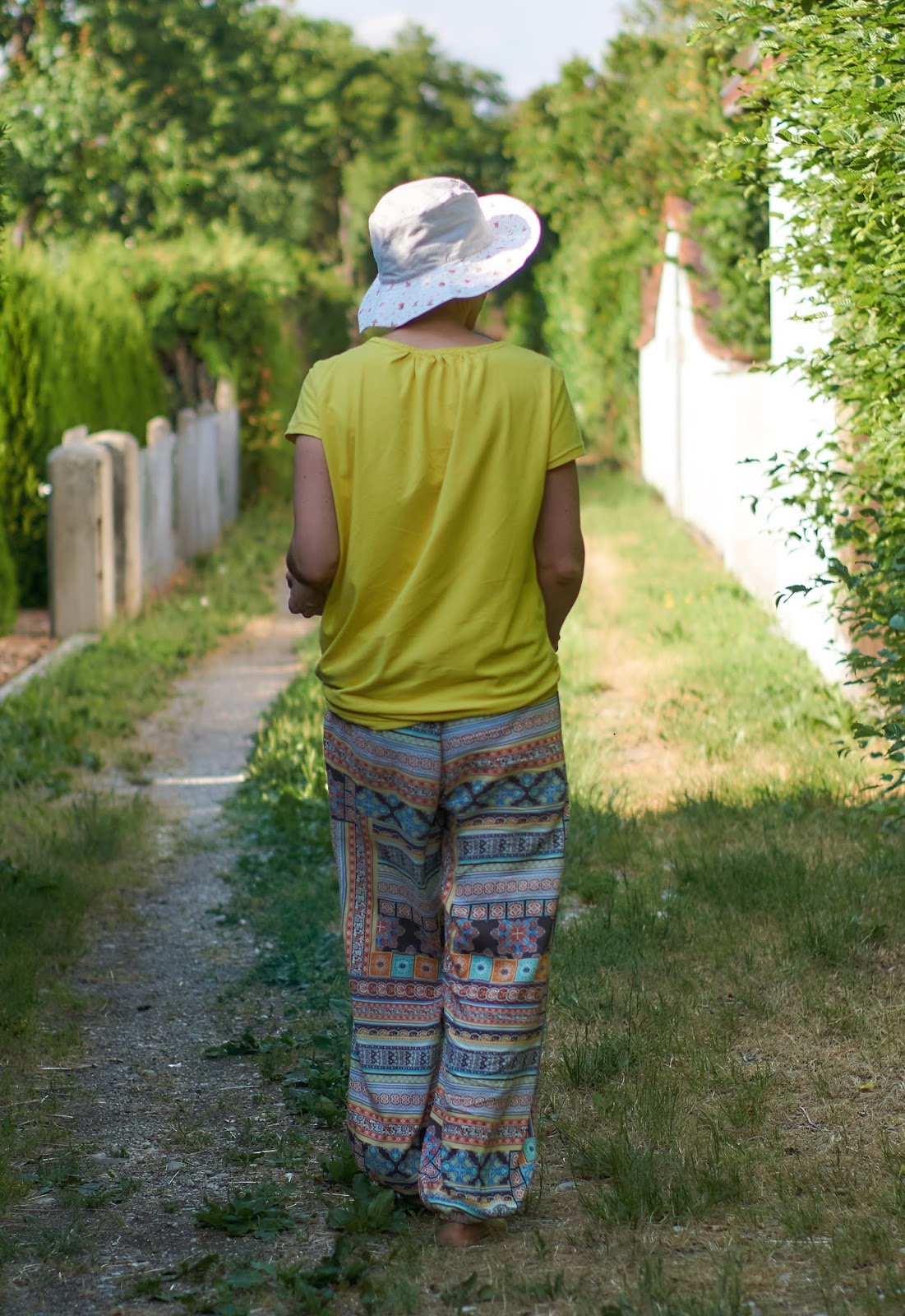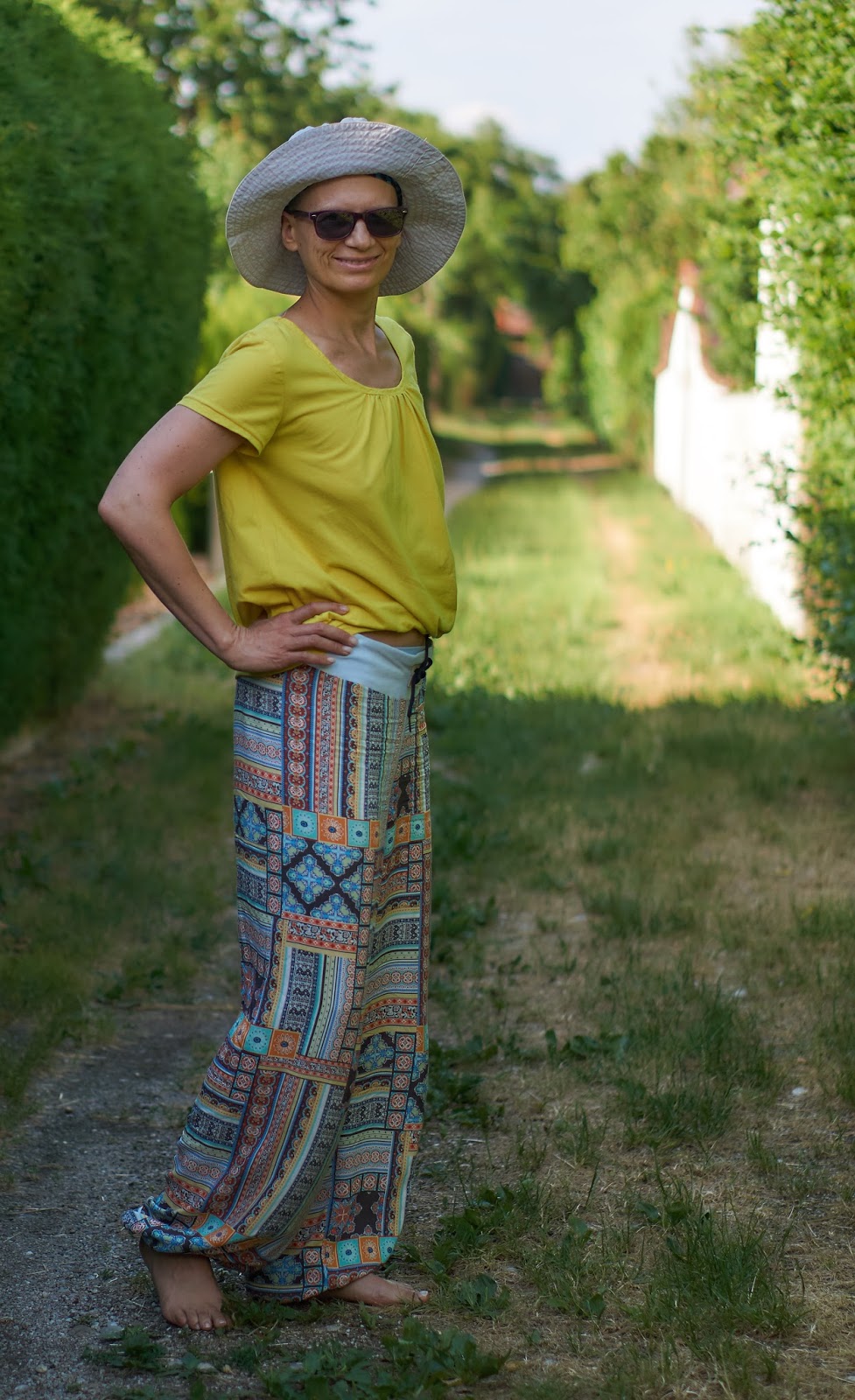 Ach ja, das Shirt ist eines meiner ersten die ich mir genäht hatte, das Lemon Juice von Ottobre und der Hut nach Schnablinas Sommerhut.